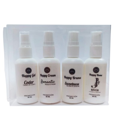 Solicita en tus pedidos, el fantástico pack Happy Body. Aromas divertidos, elegantes , exóticos y vitales. Incluye crema, gel de baño, bruma corporal y de ambiente. Promoción especial happy pack por solo 4.95€