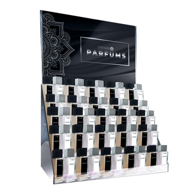 Posibilidad de personalización tanto en display como en etiquetado de envases. Solicita tu expositor de perfumes personalizado con tu marca. Puedes seleccionar de nuestro catalogo los perfumes femeninos mas vendidos del año y los perfumes masculinos top ventas para tu negocio. Podrás hacer todas las combinaciones que quieras.